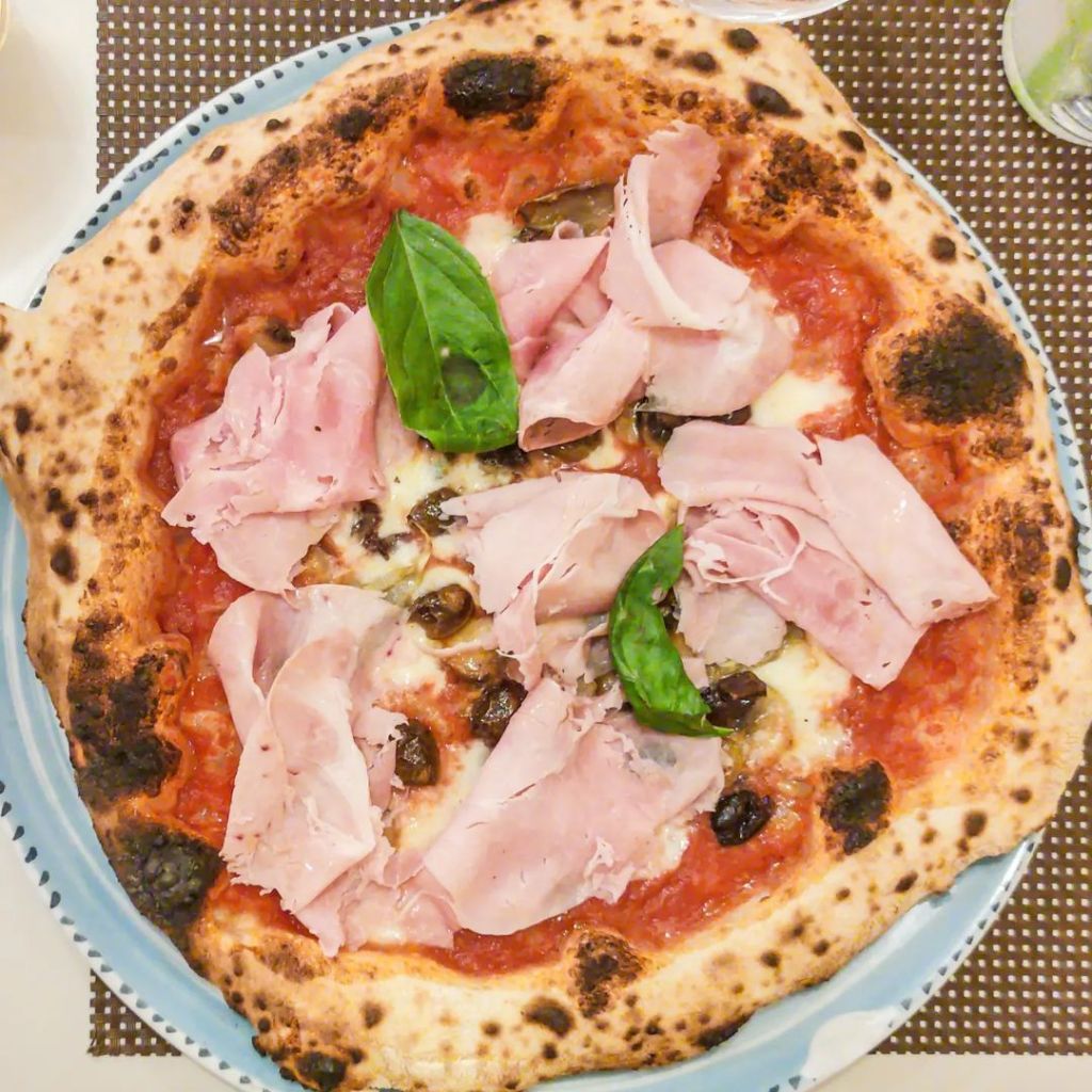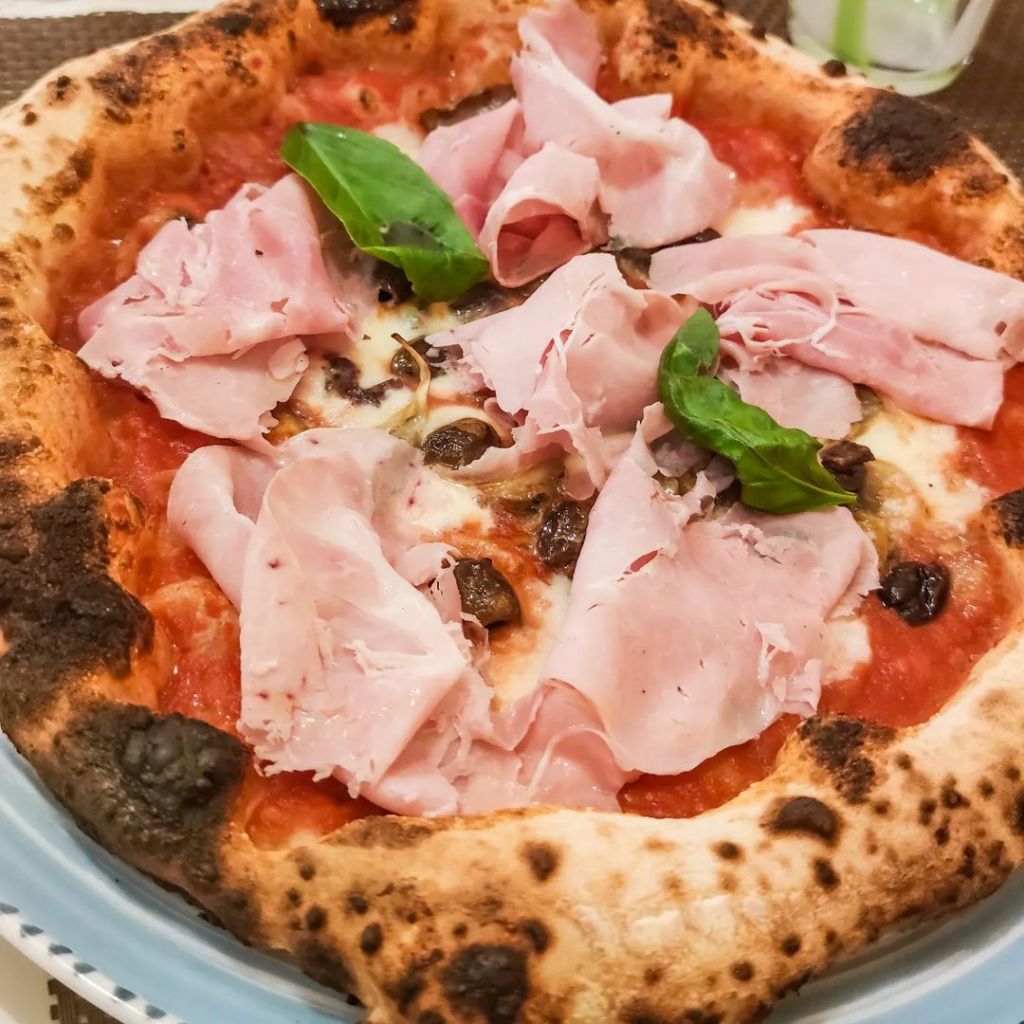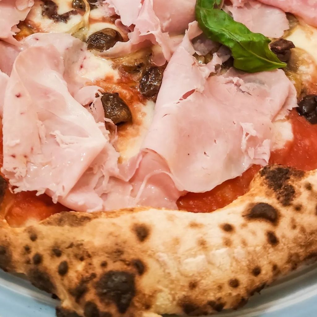 – San Marzano DOP Tomato, Fior di Latte from Monti Lattari, “Cinque Fiori Eccellenza” Cooked Ham (after cooking), Mushrooms, Artichokes, Taggiasche Olives, EVO Oil.