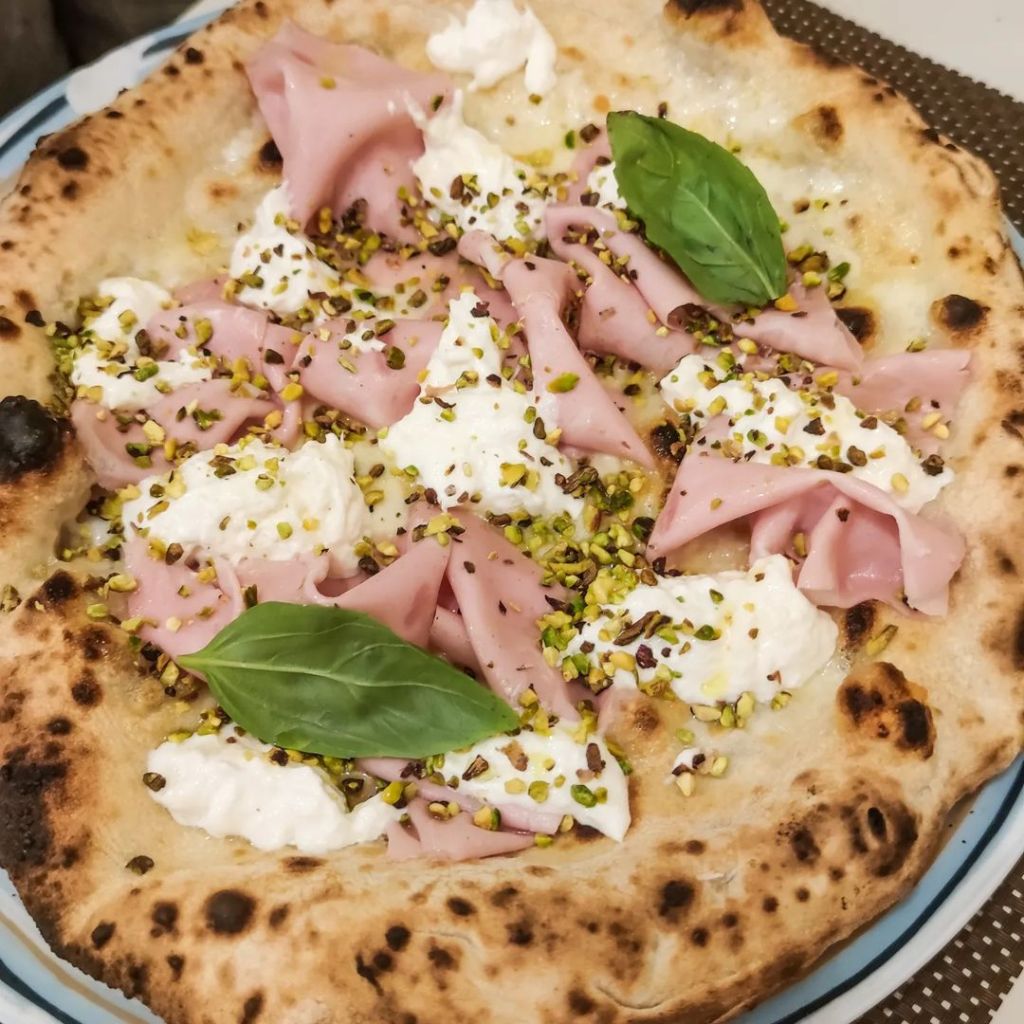 – Fior di Latte dei Monti Lattari, Mortadella di Bologna IGP, Stracciatella Pugliese, Granella di Pistacchio, Olio EVO.