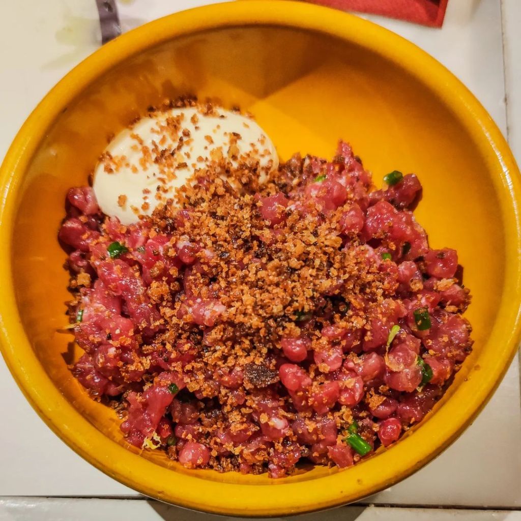 A dish a world. Places near some far. A menu that ranges from raw heart to focaccia, from tagliatella to meat sauce to Chinese ravioli.
