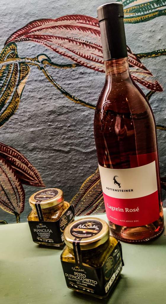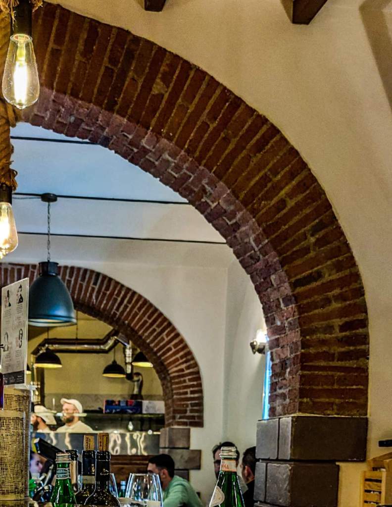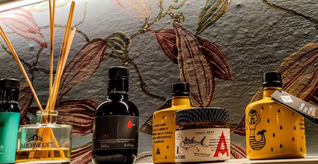 Location bella, moderna, vini e prodotti d’eccellenza che fanno arredamento fra luci e stanze che si toccano e snodano fra loro.