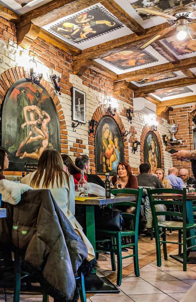 In sala turisti e fiorentini si mischiano, lingue straniere, ribollite e peposi.. Bistecche fumanti in piastre calde creano fumo caldo in sala e con il freddo fuori è un piacere. Divertente con il conto sorprendente.