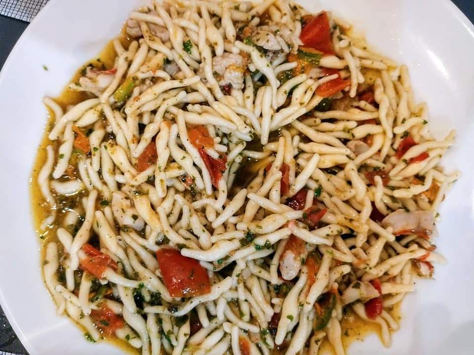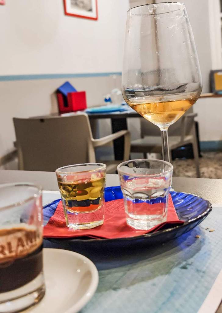 Last night L’anciua Lucca Centro. Fish restaurant in the center of Lucca. Fixed menu as shown in the photo. Four appetizers, two first courses, dessert, wine, coffee and final liqueur € 25.