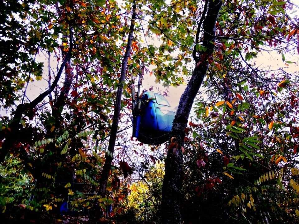 Suspended cable cars.