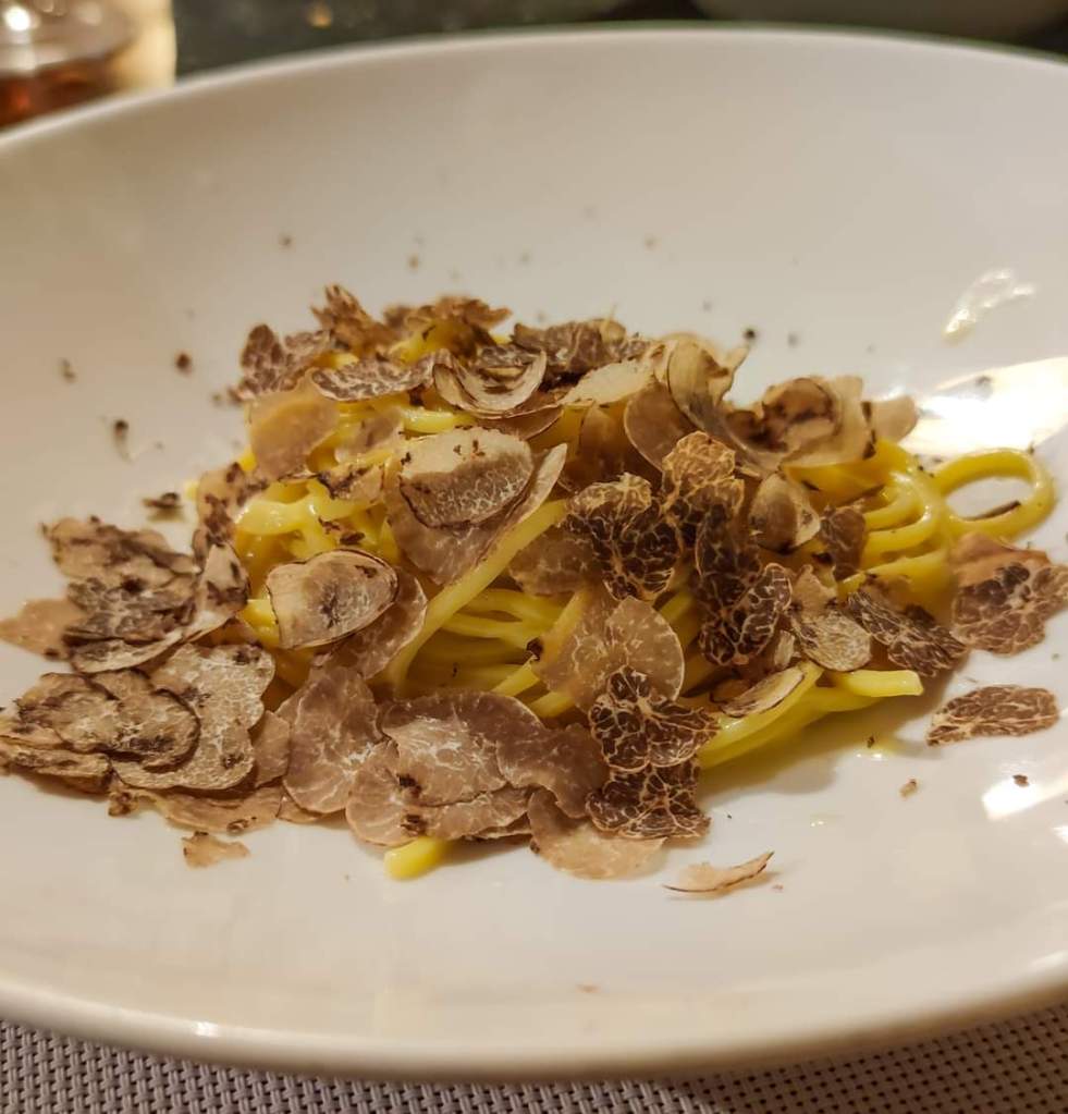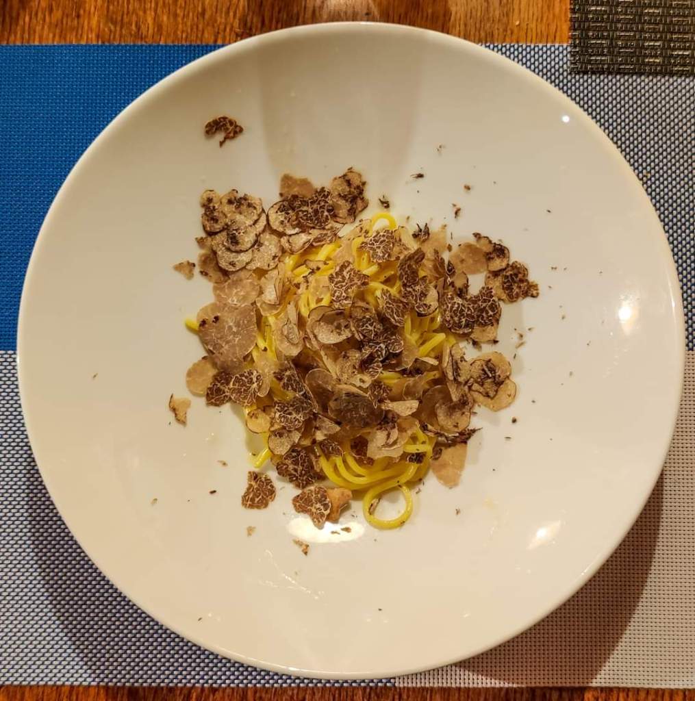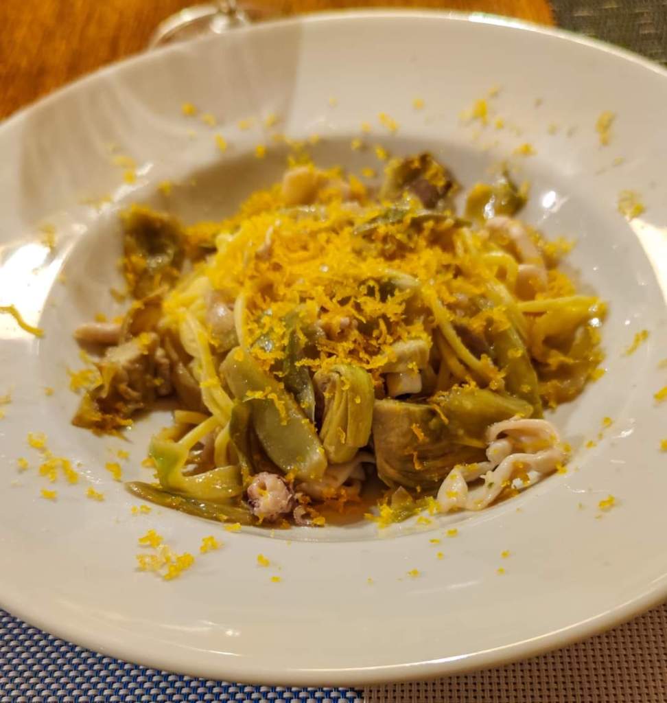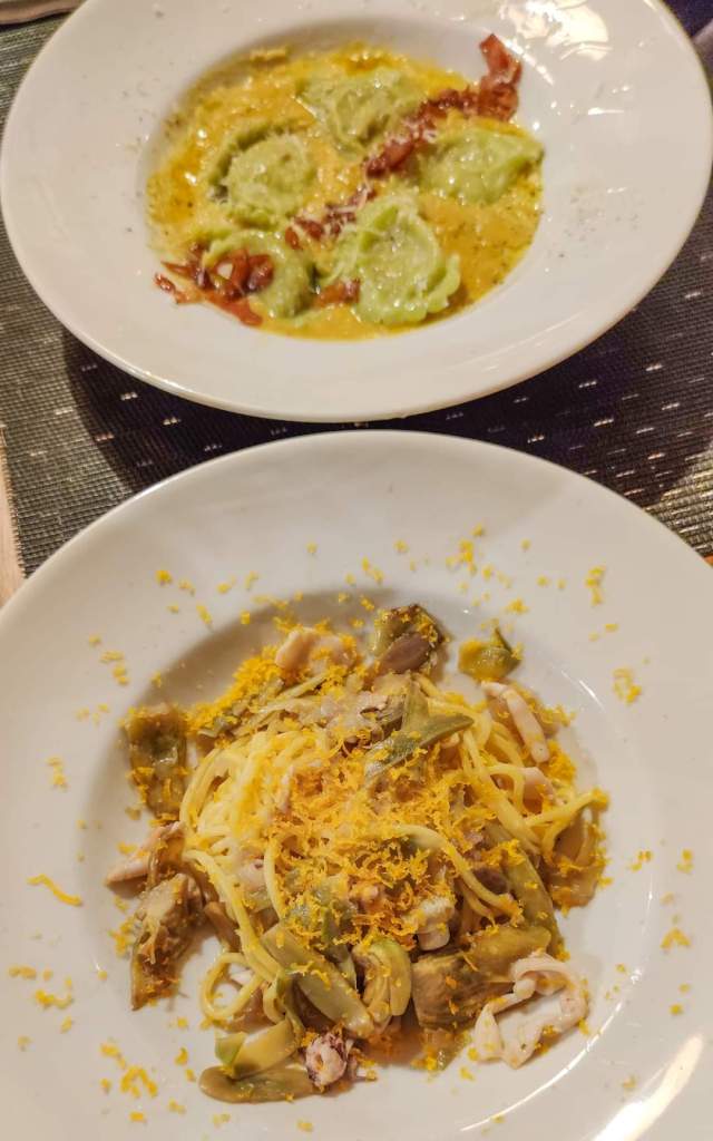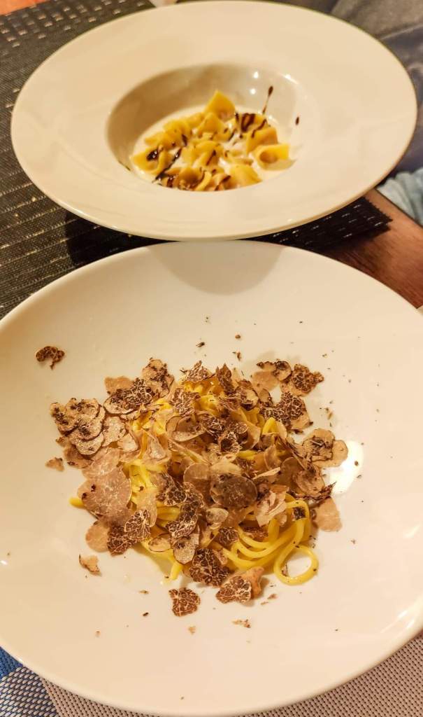 Per me tagliolini al tartufo e tagliolini carciofi, calamari e bottarga, guardate le foto, peccato che non fanno sentire i sapori. Per me non si può vivere senza tartufo e bottarga.