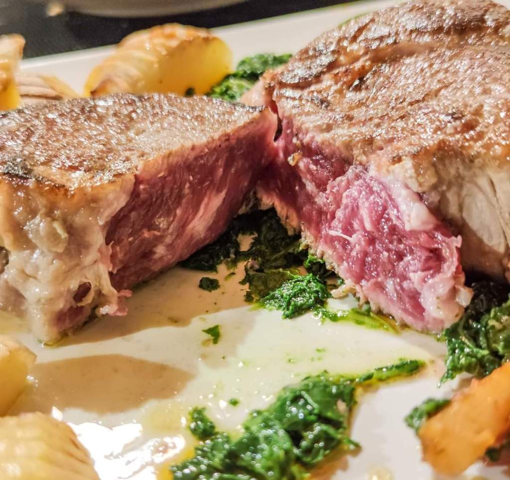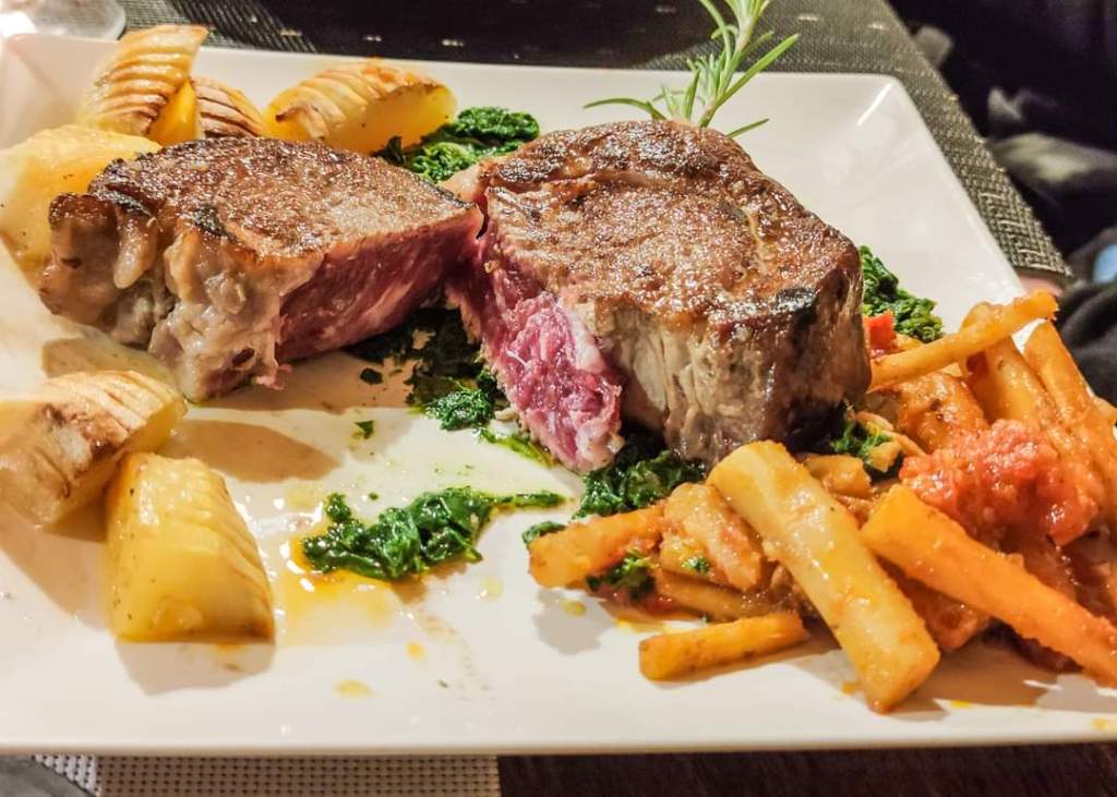 Come secondo piatto un cuberoll di manzetta prussiana con i suoi vari contorni. Morbidezza e Succulenza rossa. Peccato di gola. Peccato carnale.