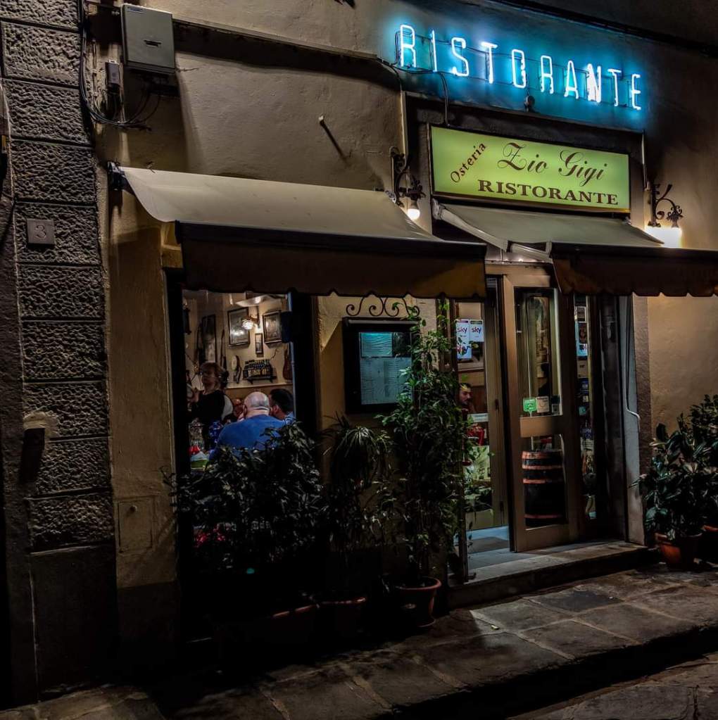 Ieri sera a Firenze Osteria Zio Gigi. Calda e tipica osteria fiorentina a 100 metri dal Duomo. Qui possiamo trovare i piatti classici fiorentini e toscani, ma oltre ad una cucina semplice, abbondante e di sostanza, la particolarità del locale sta tutta nel suo proprietario, un Oste come ormai pochi sono rimasti e sempre meno nella città turistiche. Qui entrate non in un’osteria, ma nella sua osteria, vi seguirà durante la cena con canzoni, battute e piatti offerti da assaggiare e vi assicuro che non è cosa facile da trovare in un centro storico come quello di Firenze. Passerete una bella serata spendendo poco.