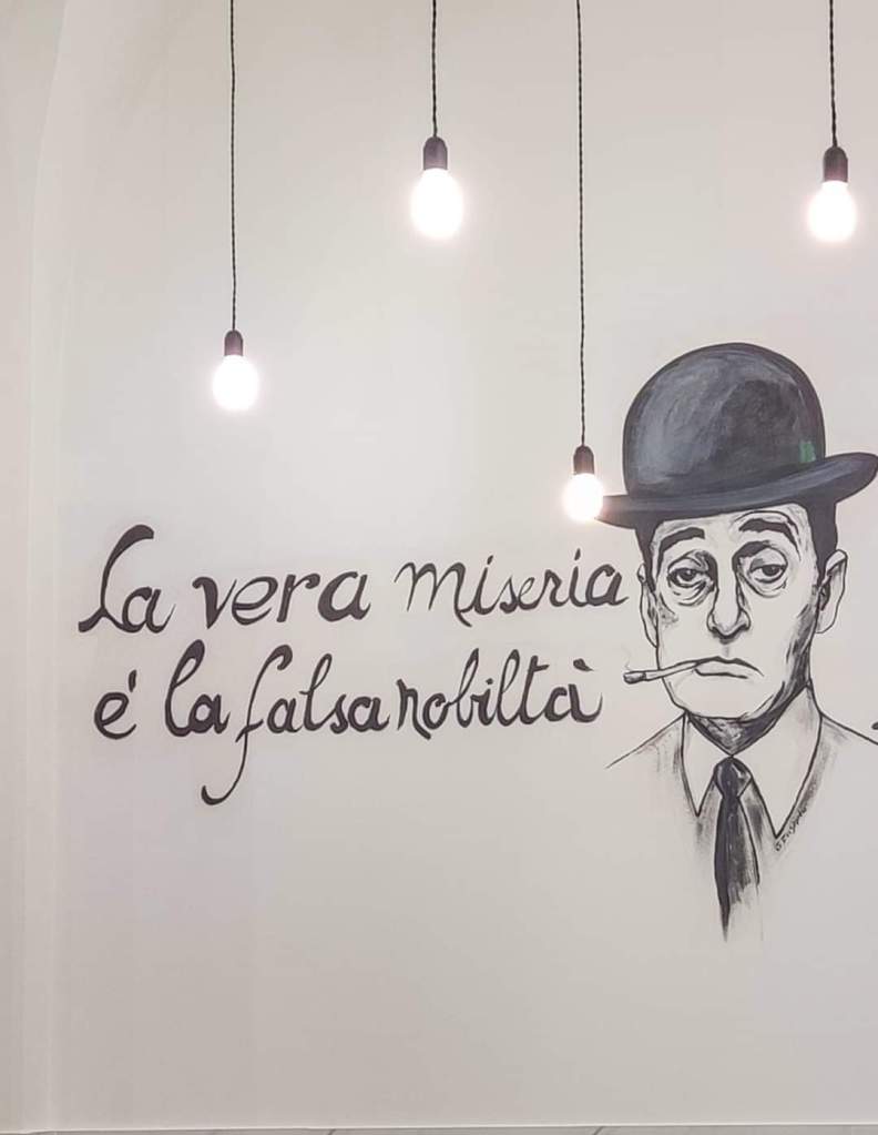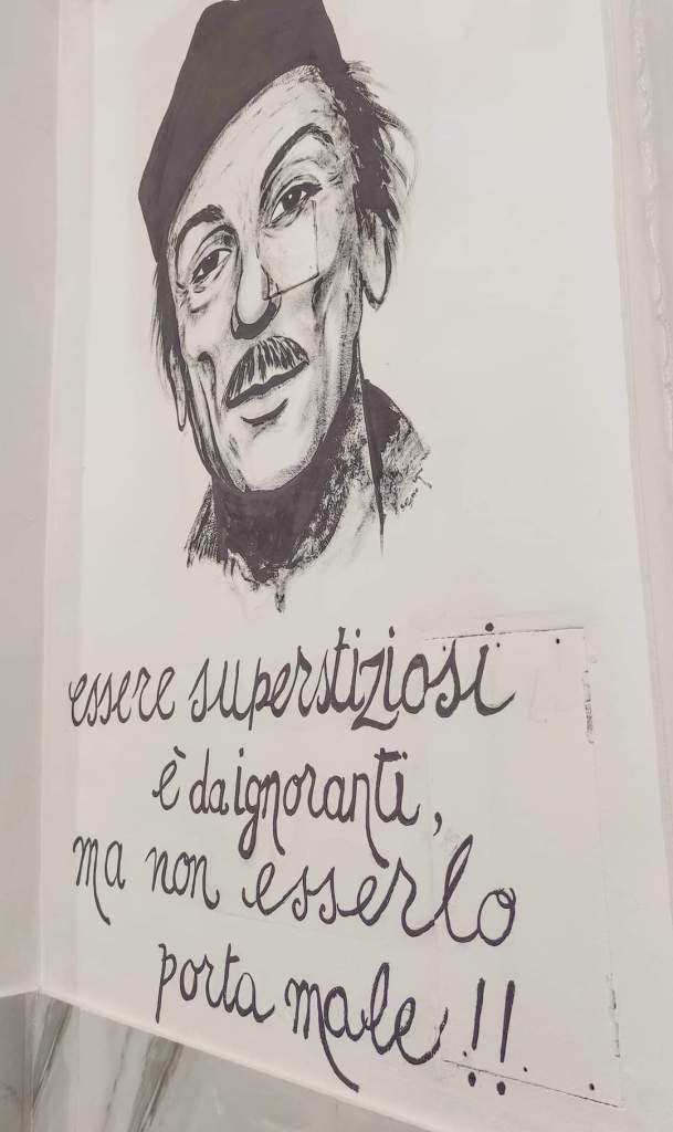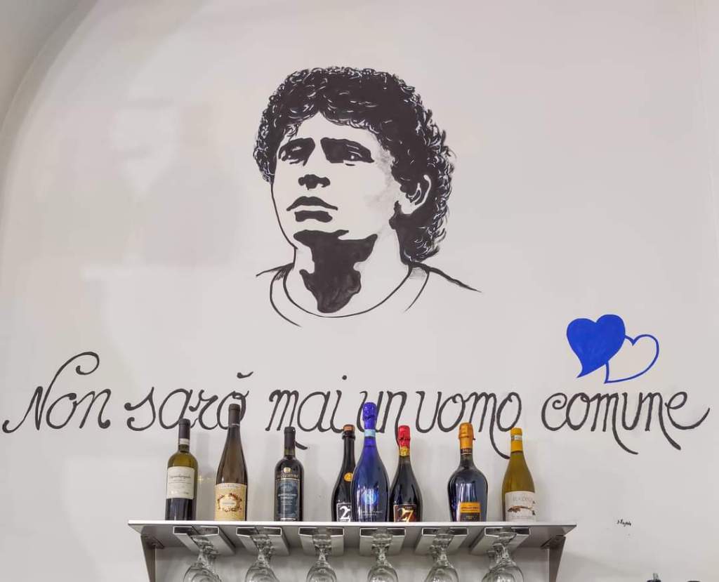 White and minimalist location, open fires and preparations, Naples and its “Kings” drawn and written on the walls.