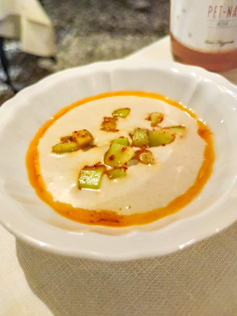 - Zuppetta di pane e mandorle, insalata di cetriolo piccante.