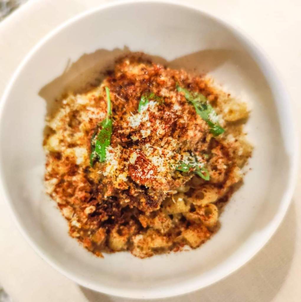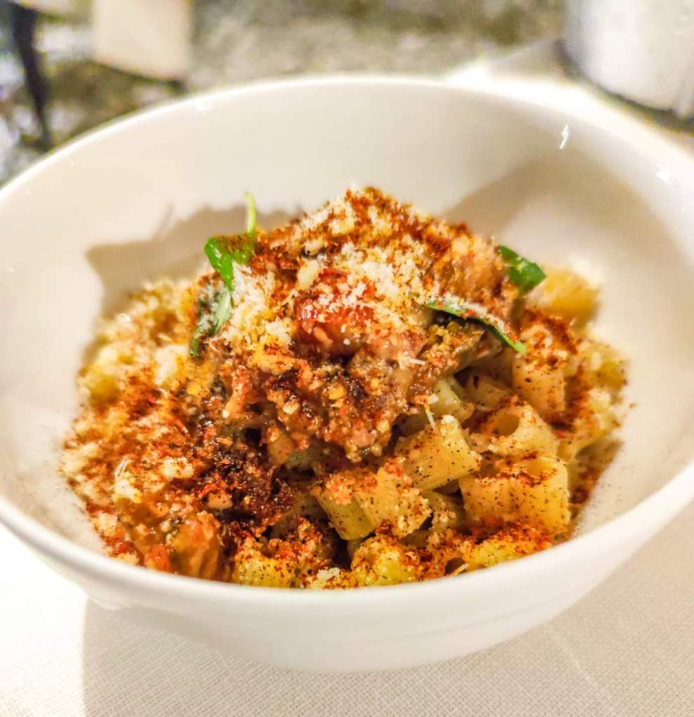 - Ditalini con stufato di pomodori, melanzane, sedano e olive.