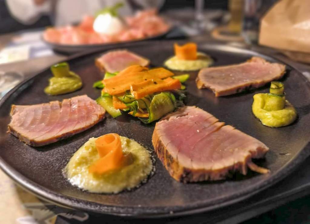 Dalla cucina taglieri, tartare, crostoni e piatti del giorno. Ottimo il “tonno come un roast beef” di ieri sera, in accompagnamento una bottiglia di Livio Felluga sempre interessante per qualità/prezzo.