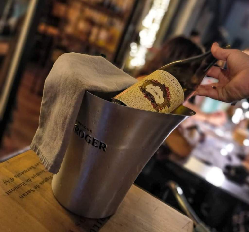 From the kitchen, chopping boards, tartare, crostoni and dishes of the day. Last night’s “tuna like roast beef” was excellent, accompanied by a bottle of Livio Felluga, always interesting in terms of quality/price.