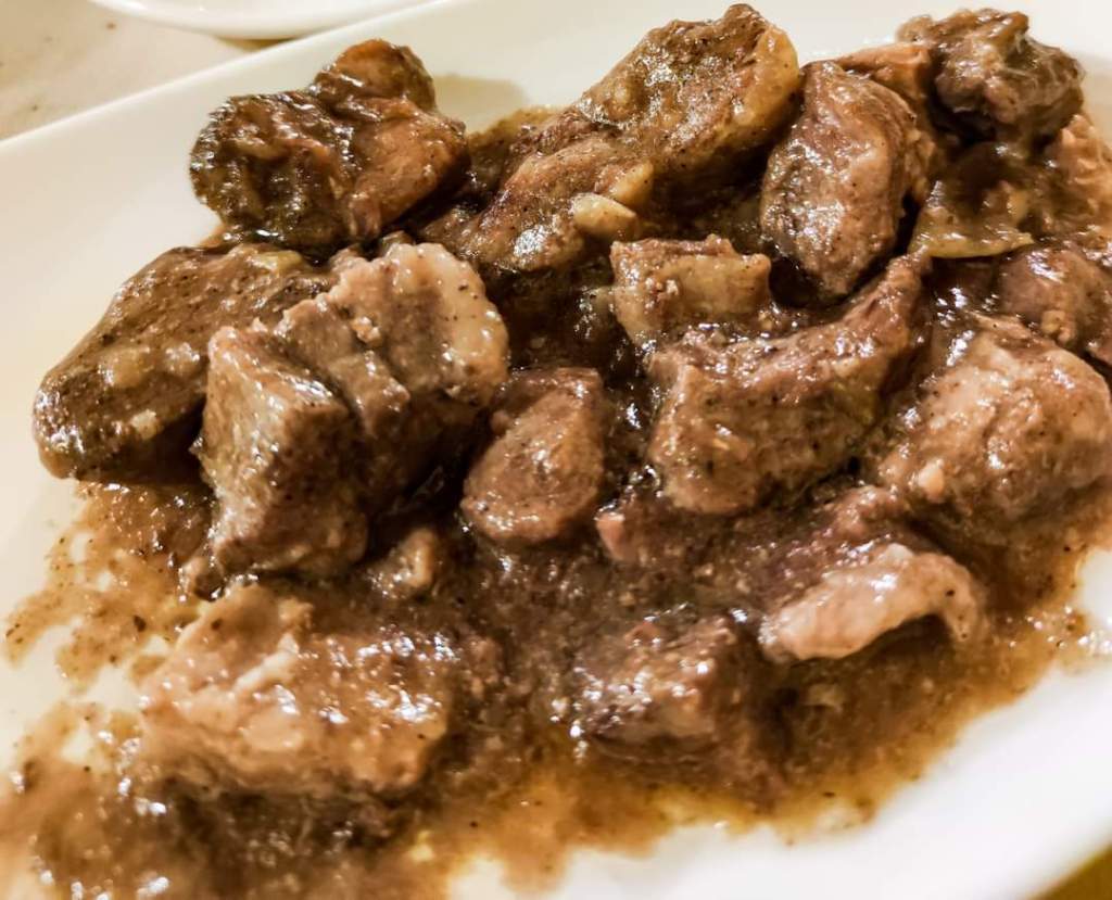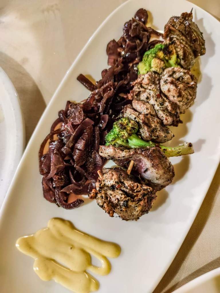 - Uno spiedino di manzo verdure e cipolle caramellate