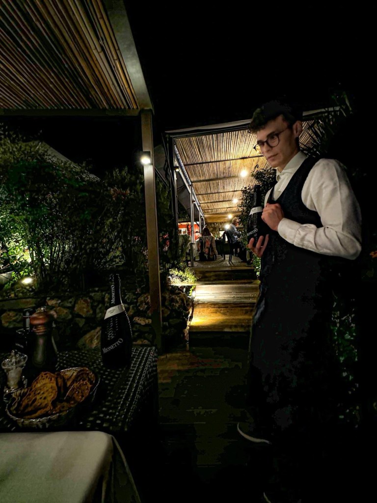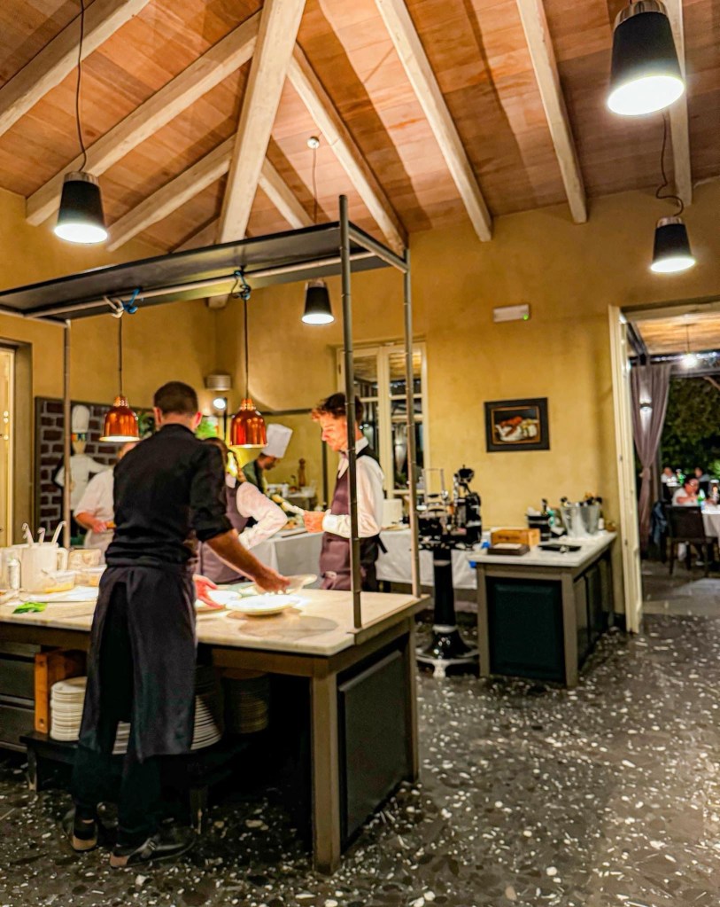 Last night, we dined in the panoramic garden of Ristorante La Dogana in Capezzano Pianore. Nestled in nature with a breathtaking view of the sea, La Dogana is a restaurant that combines history and modernity. Located in a beautifully renovated historic building, it offers an elegant and welcoming atmosphere. You can choose between the refined interiors, featuring high ceilings and wooden beams, the charming panoramic veranda surrounded by greenery and olive trees, or a more intimate space on the lower terraces, as we did. Every corner exudes attention to detail and beauty.