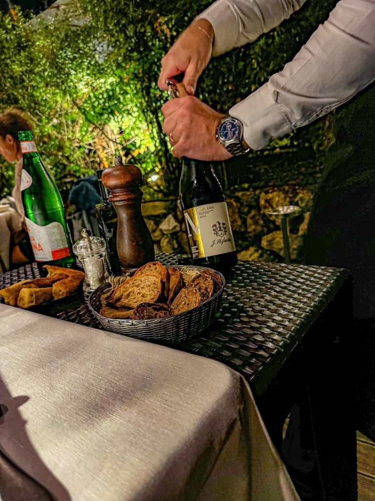Immerso nella natura e con una vista mozzafiato sul mare, La Dogana è un ristorante che unisce storia e modernità. Situato in un edificio storico finemente ristrutturato, offre un’atmosfera elegante e accogliente. Potrete scegliere tra l’eleganza degli interni, caratterizzati da soffitti alti e travi in legno, la suggestiva veranda panoramica circondata dal verde e da olivi, o uno spazio più intimo nelle terrazze sottostanti come è stato nel nostro caso. In ogni angolo si respira cura per i dettagli e bellezza.