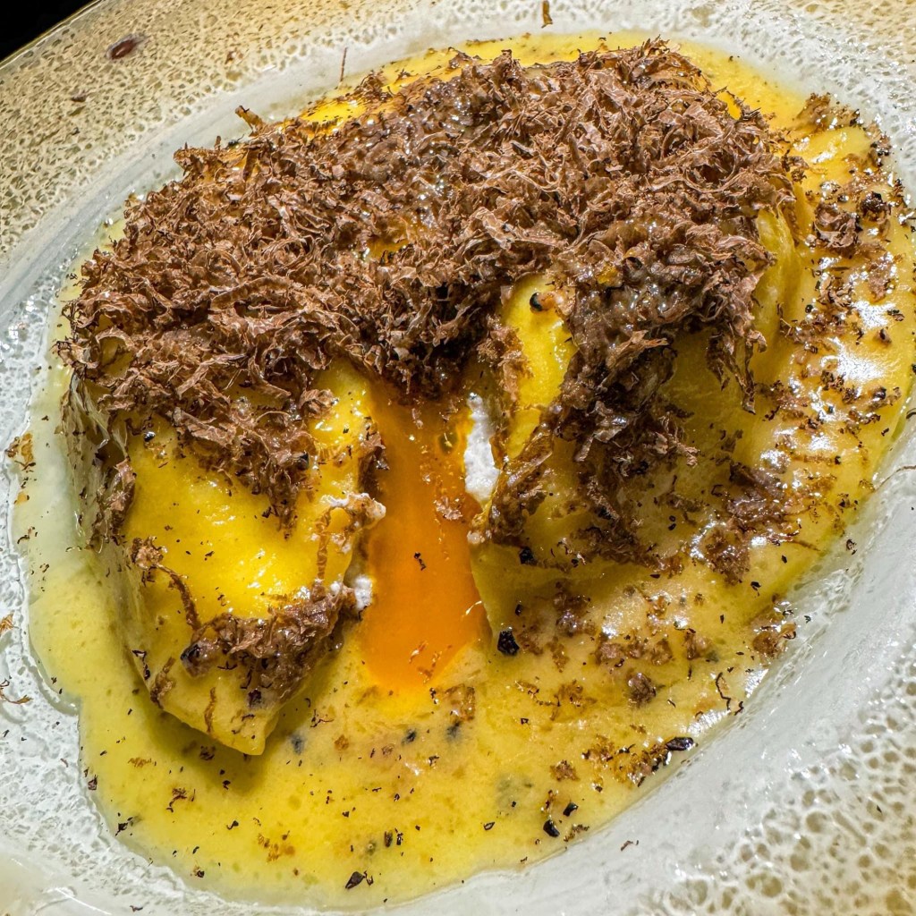 L’ Uovo in raviolo con burro tartufato e tartufo estivo era orgasmico.