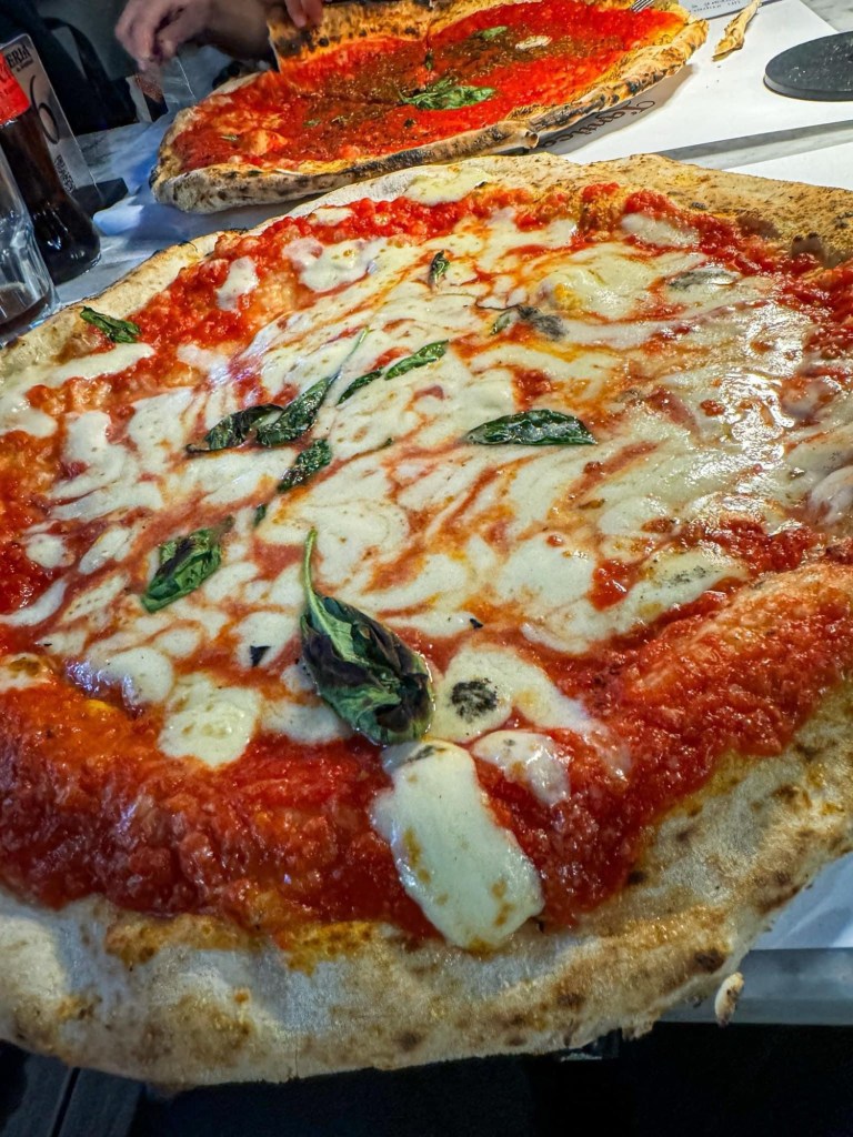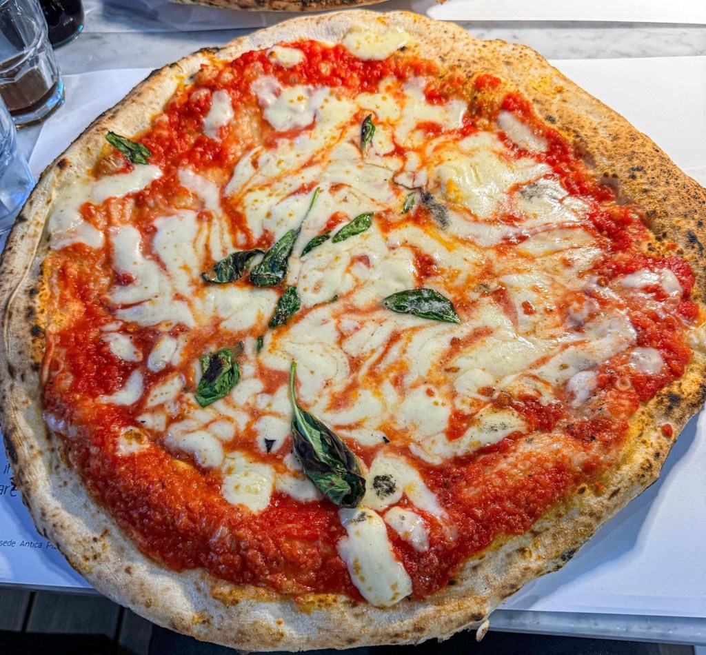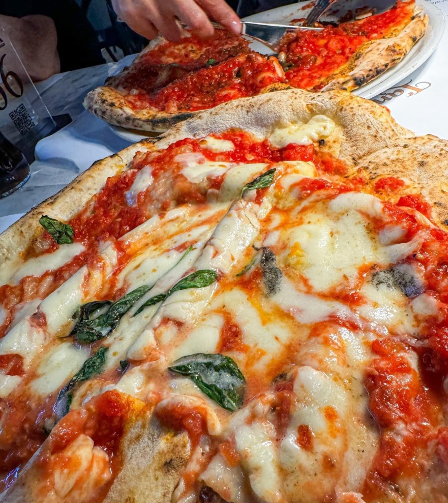 Last night, we tried the new pizzeria “Michele” in Viareggio, a historic Neapolitan brand that has just opened in town. If you’re thinking of the classic Neapolitan pizza with a thick crust, forget about it: here, the star is the “ruota di carro” pizza. If you’re not familiar with it, don’t worry – just take a look at the photos to get the idea.