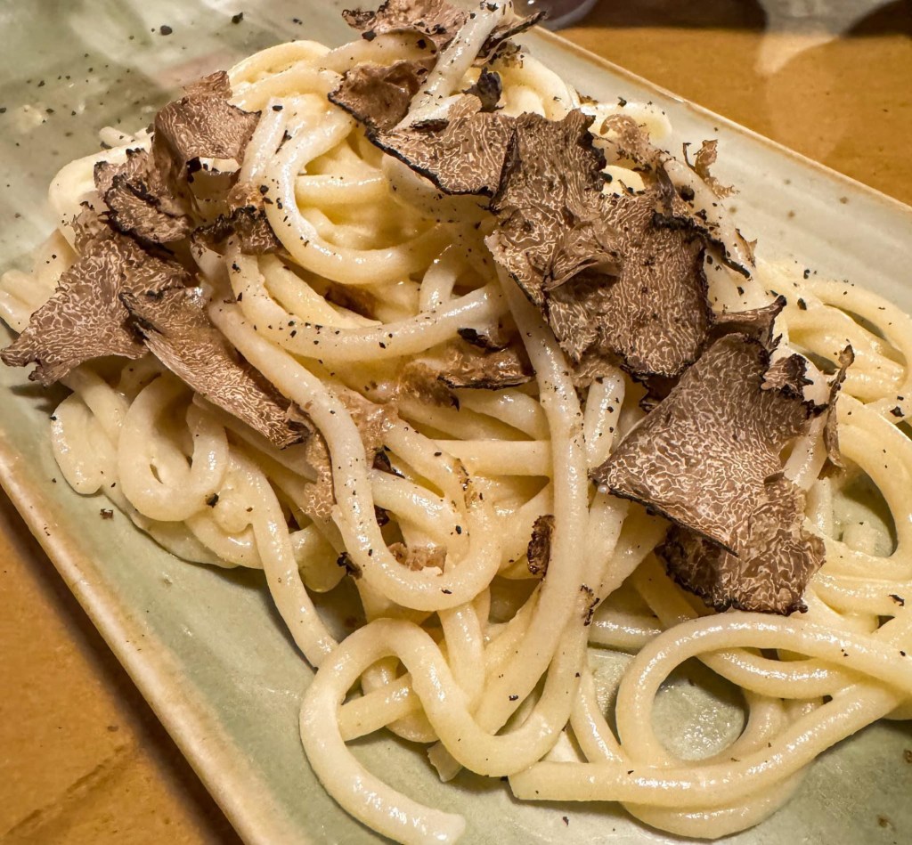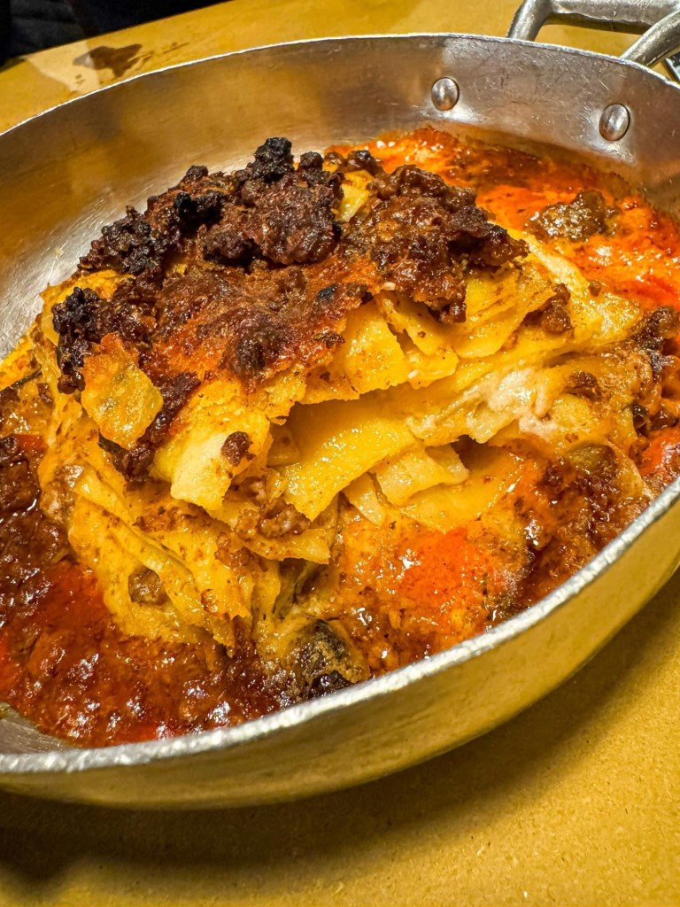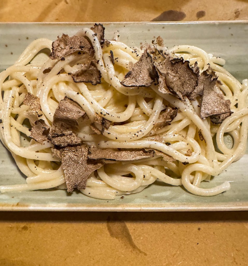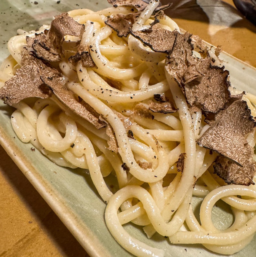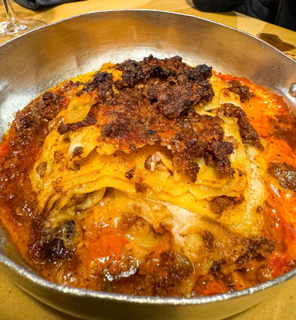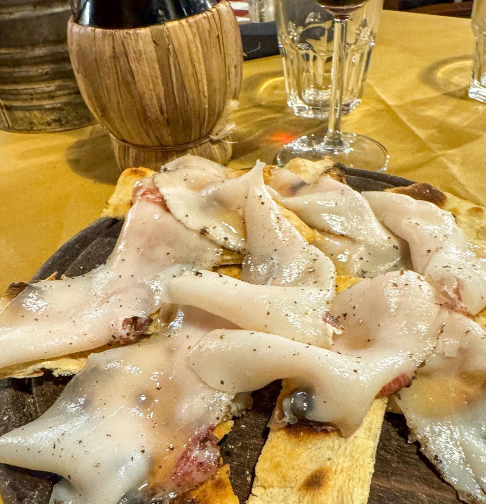 Focaccia calda e lardo, un orgasmo traslucido di grasso e croccantezza, pura estasi che ti scivola giù in bocca. Pane tostato e salsiccia fresca, un morso di vita intenso, spudorato, che ti prende senza pietà. Le lasagne di Stefano? Lussuria allo stato puro, strati di godimento che si fondono tra carne e besciamella in un abbraccio indecente. E poi i pici al tartufo, una poesia sporca che ti porta nel profondo della terra, con scaglie profumate bagnate da una crema burrosa. Il baccalà con i ceci? Carnoso, schietto, un boccone di mare che non conosce compromessi, sincero fino al midollo.