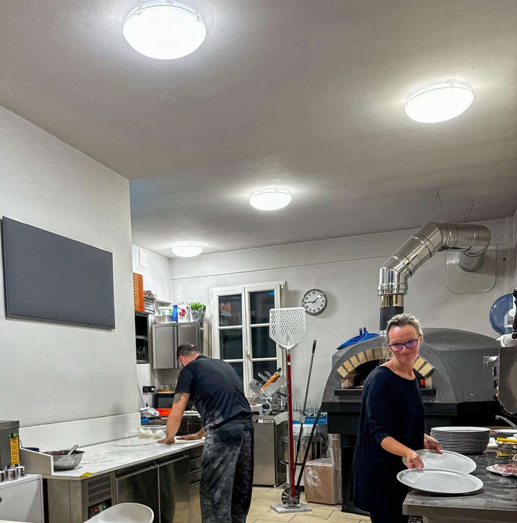 Ma il vero segreto è la coppia che sta dietro tutto. Lui, il pizzaiolo maestro, gestisce il forno con la precisione di un direttore d’orchestra. Lei, oltre ad aiutare alla nascita della pizza al banco dei piaceri, la porta in sala con grazia e un sorriso accogliente, un’opera servita con cura. È una danza perfettamente sincronizzata che rende l’esperienza intima e speciale.