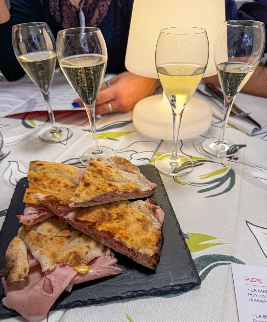 Il servizio è curato nei minimi dettagli: bollicine di benvenuto, focaccia calda con mortadella e un’accoglienza calorosa che ti fa sentire a casa. Le pizze, leggere e saporite, non lasciano quel senso di pesantezza; sono l’equilibrio perfetto tra morbidezza e croccantezza.