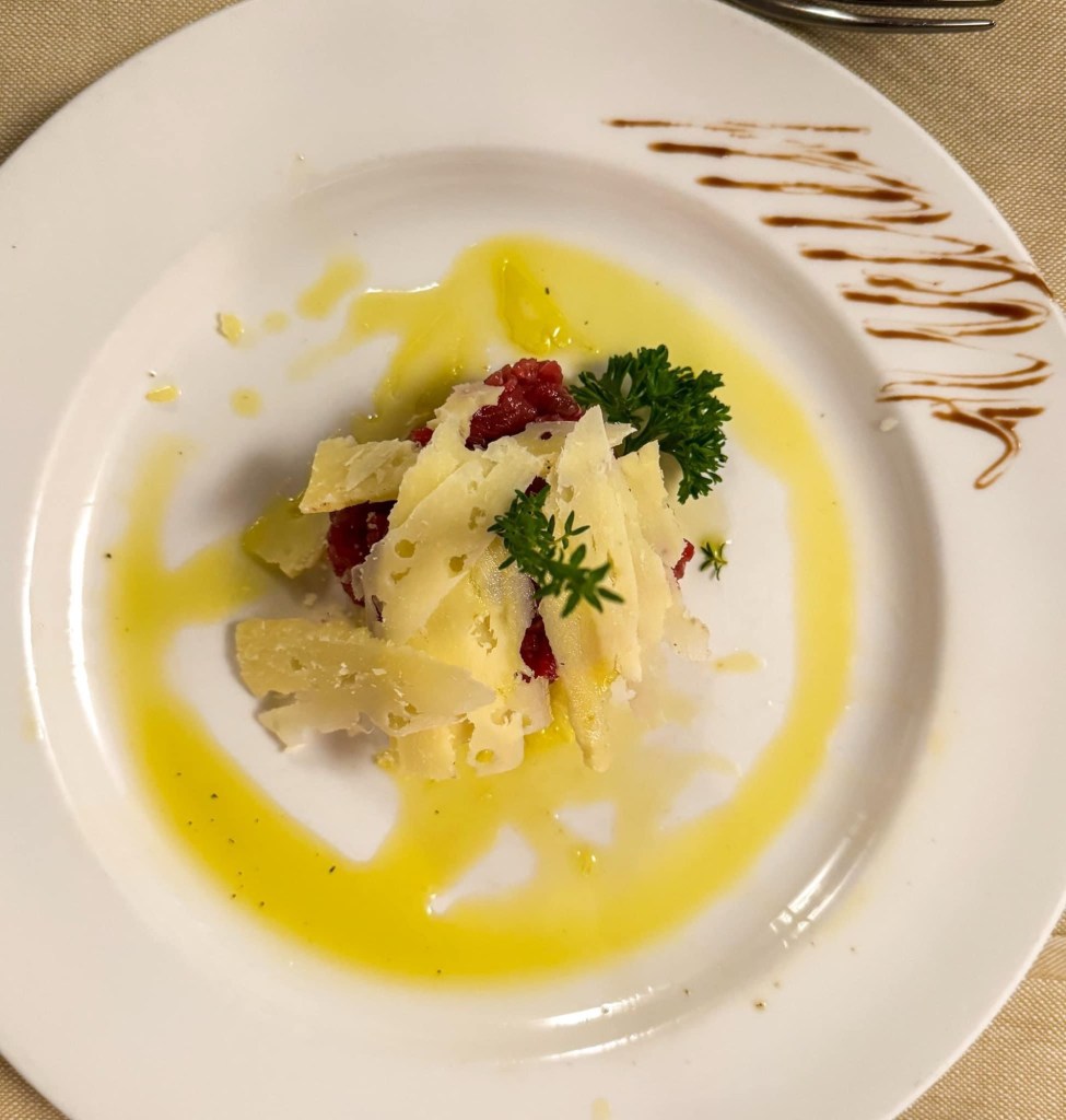 Ieri sera Ristorante La Cecca. Siamo alle pendici della collina di Coselli a Lucca, in un locale che urla tradizione. Qui non si fa finta: la storia è impressa sui muri, sulle tovaglie, e soprattutto nei piatti. La Cecca, con il nome che omaggia Francesca Baldassari (la vera capostipite), ha le sue radici in un negozio di alimentari aperto negli anni ’40. Ma non fatevi ingannare: qui non si tratta di una bottega polverosa, ma di un tempio della cucina lucchese rustica, diventata storia della zona sotto la guida del figlio Enrico e ora di suo nipote Giuseppe.